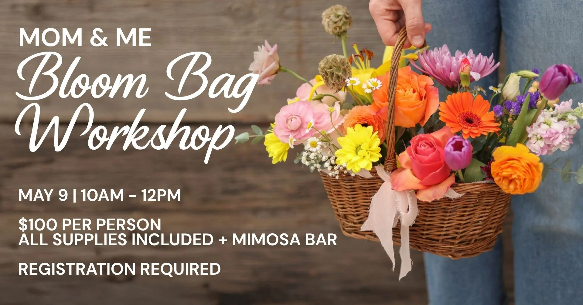 The day before Mother’s Day, we’re celebrating that everyday magic. Join us for a Mom & Me Bloom Bag Workshop where you’ll create a living floral arrangement in a beautiful wicker handbag.